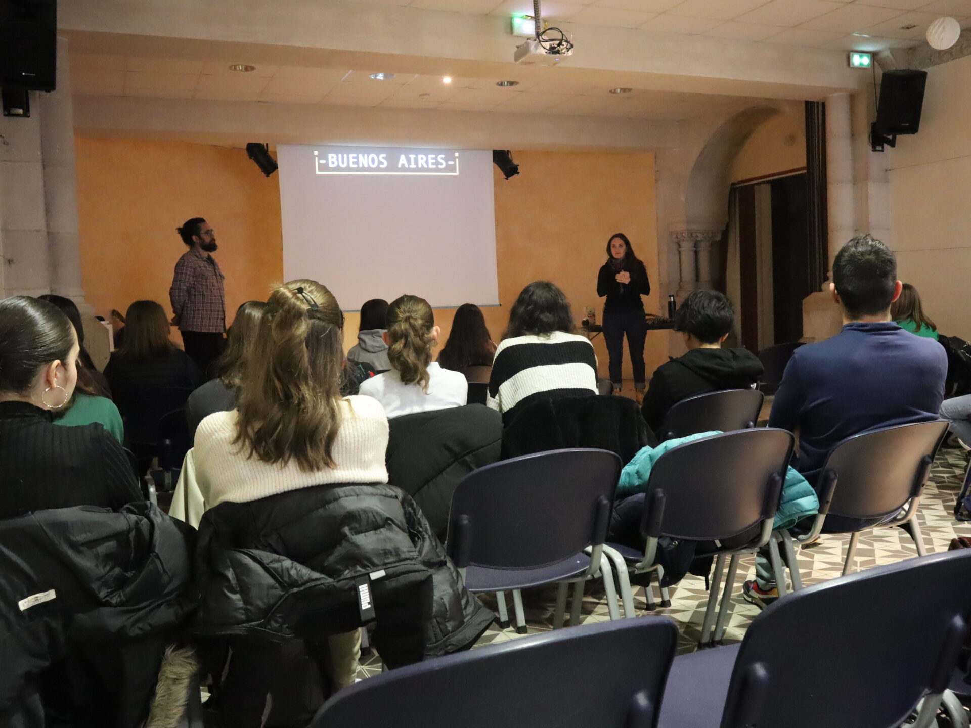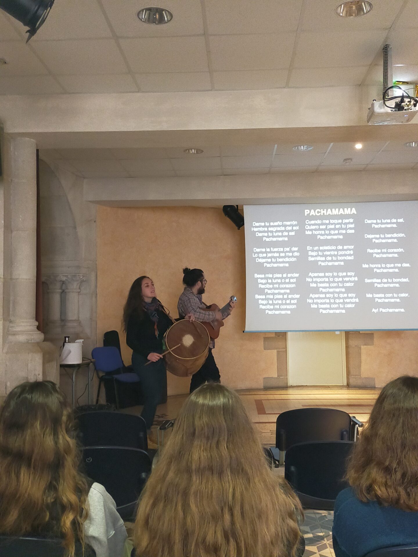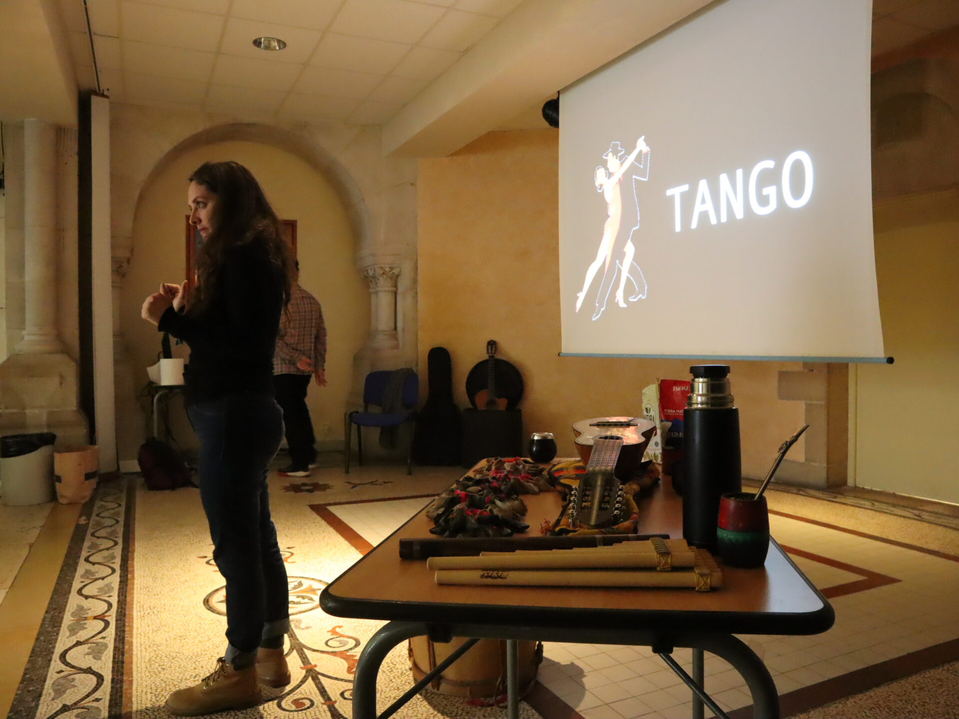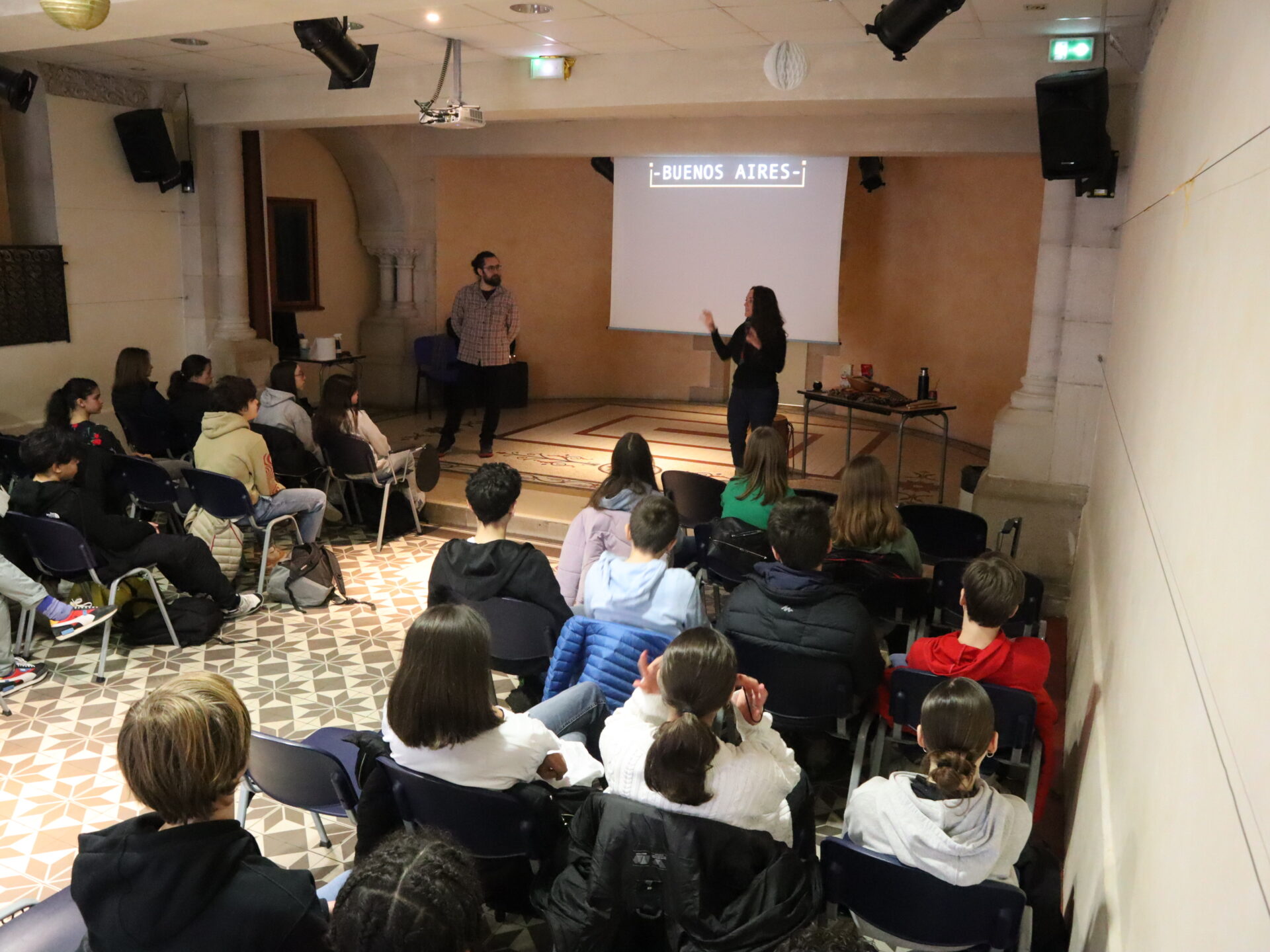 Jeudi 23 mars, les élèves hispanistes de quelques classes de quatrième ont pu échanger avec un duo de musiciens argentins à propos de la culture argentine, notamment son folklore. La finale de la dernière coupe du monde de football a évidemment été évoquée dans la discussion, menée entièrement en espagnol.