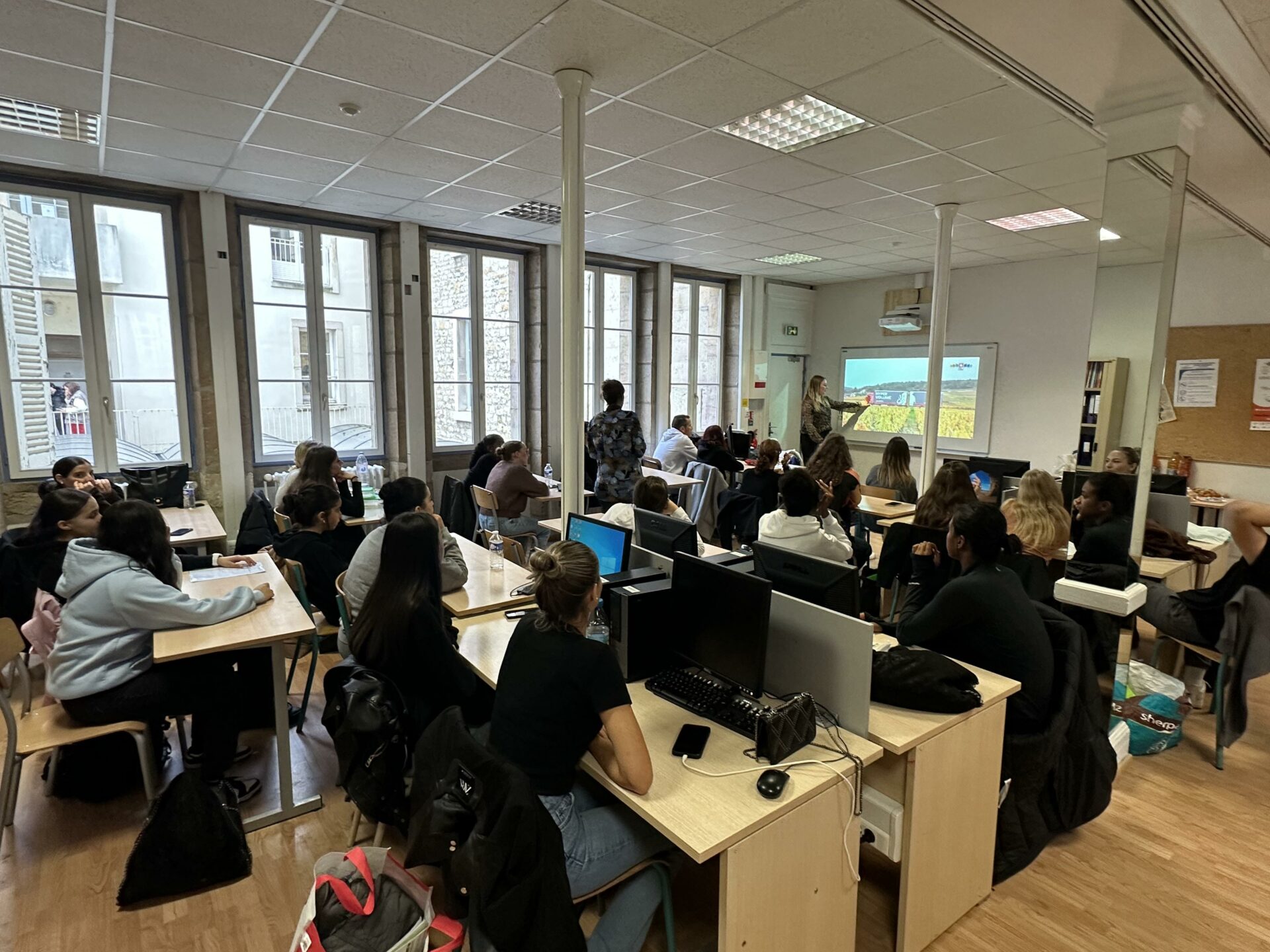 Pour terminer la première période de cours, le vendredi 20 octobre dernier, les Terminales AGOrA ont eu la chance d’accueillir avec leurs professeurs de Gestion-Administration, deux anciennes élèves de la filière. En présentiel, Clélia DANGER BERTRAND, de la promotion 2017-2018, maintenant chargée de recrutement dans l’entreprise TRANSPORTS CORDIER à Is-sur-Tille et en visio-conférence, Fanta CAMARA, de la même promotion, maintenant étudiante en marketing et relations internationales à Los Angeles (assistante marketing pour la marque Homies From Paris créée par Goba Noël et Jules Koundé, joueur professionnel international de football). Chaque ancienne élève a pu décrire son parcours et présenter son poste actuel. Quelques questions ont été émises par nos futurs bacheliers, pour s’informer et préparer leur orientation. Un goûter, préparé par l’ensemble des participants, est venu clôturer ce moment de convivialité.