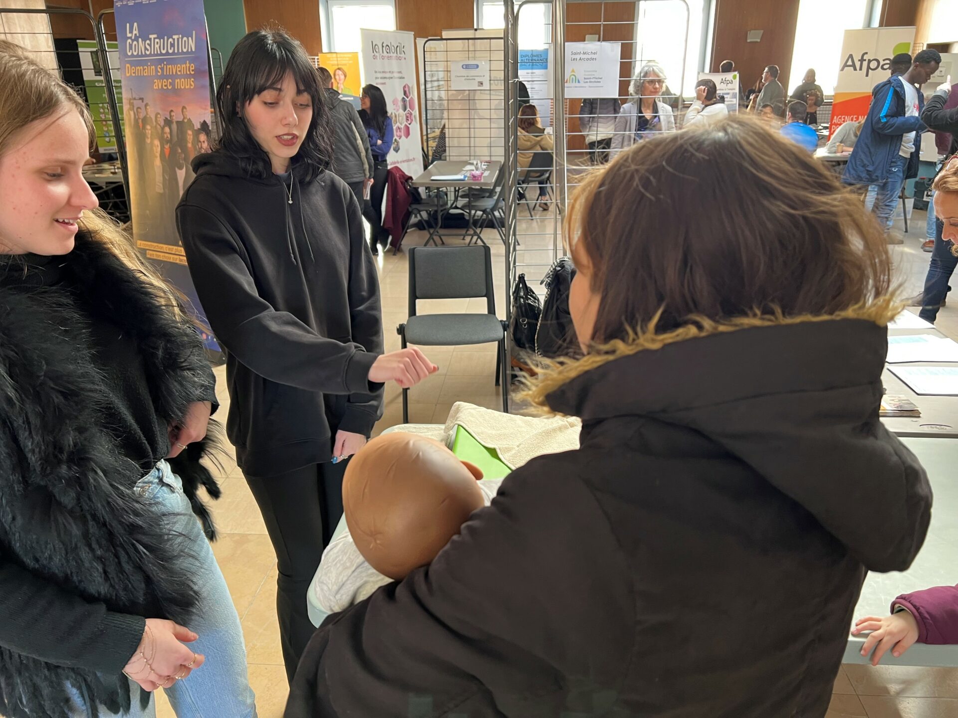 La Chambre de Métiers et de l’Artisanat a organisé à la demande du Conseil Départemental de la Côte-d’Or, un Forum de l’Apprentissage, mercredi 5 avril. Cet évènement a permis aux jeunes et adultes concernés par l’alternance et suivis par le Département (et aux professionnels accompagnants), de prendre connaissance de l’offre de formation des CFA par la découverte d’un atelier pratique et ludique. Le CFA Les Arcades était représenté par Céline MECHIN. Stacy, apprentie à la Croix Rouge Française et Célia, apprentie à la Ville de Dijon ont apporté leur témoignage et leur savoir-faire de professionnelles de la petite enfance.