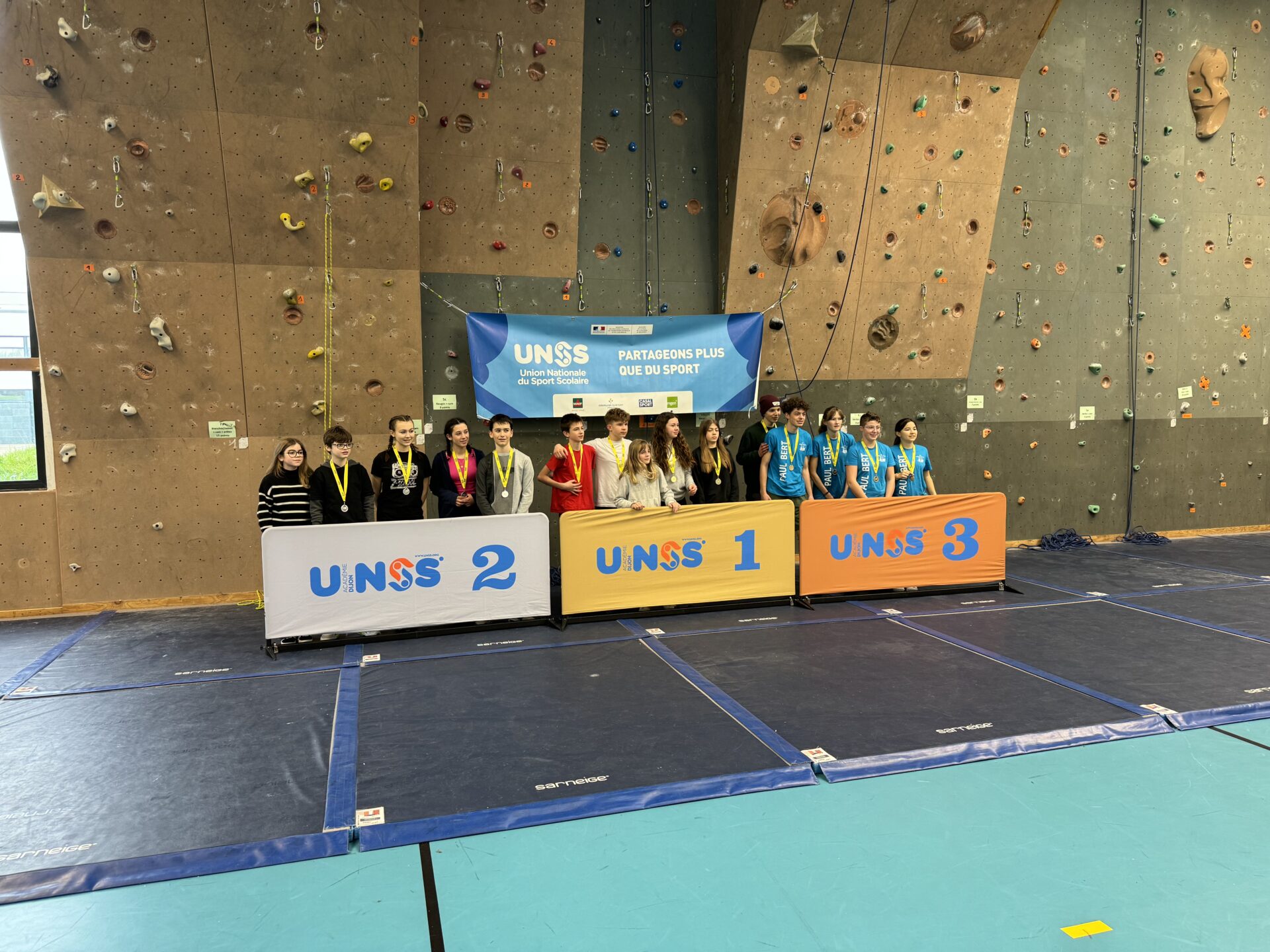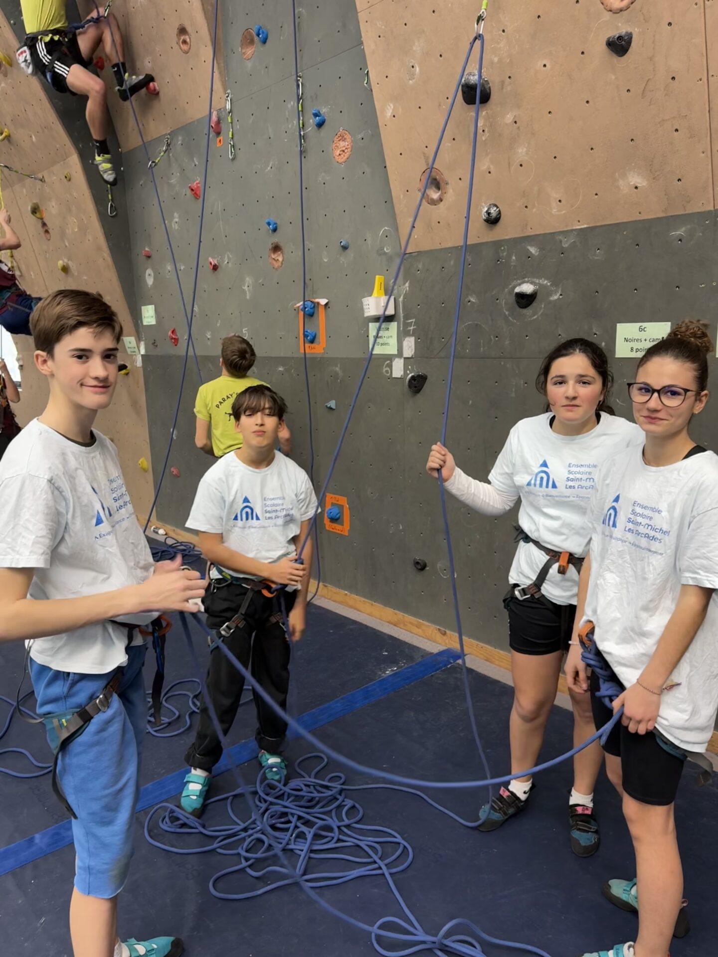 Lors du championnat académique qui s’est déroulé le 13 mars, où 17 équipes étaient engagées, deux de notre collège s’étaient qualifiées, accompagnées de 6 jeunes officiels (14 élèves au total). Notre première équipe finit à la deuxième place avec 292 points à 8 points des premiers (300 points). La qualification au championnat de France d’escalade pour la deuxième année consécutive s’est donc jouée à rien. Notre deuxième équipe finit 14ème. Félicitations à nos grimpeurs qui ont tout donné durant cette journée et nous félicitons également les 6 jeunes juges pour leur implication et leur sérieux. Les élèves ont une nouvelle fois représenté avec brio notre établissement, bravo à eux.